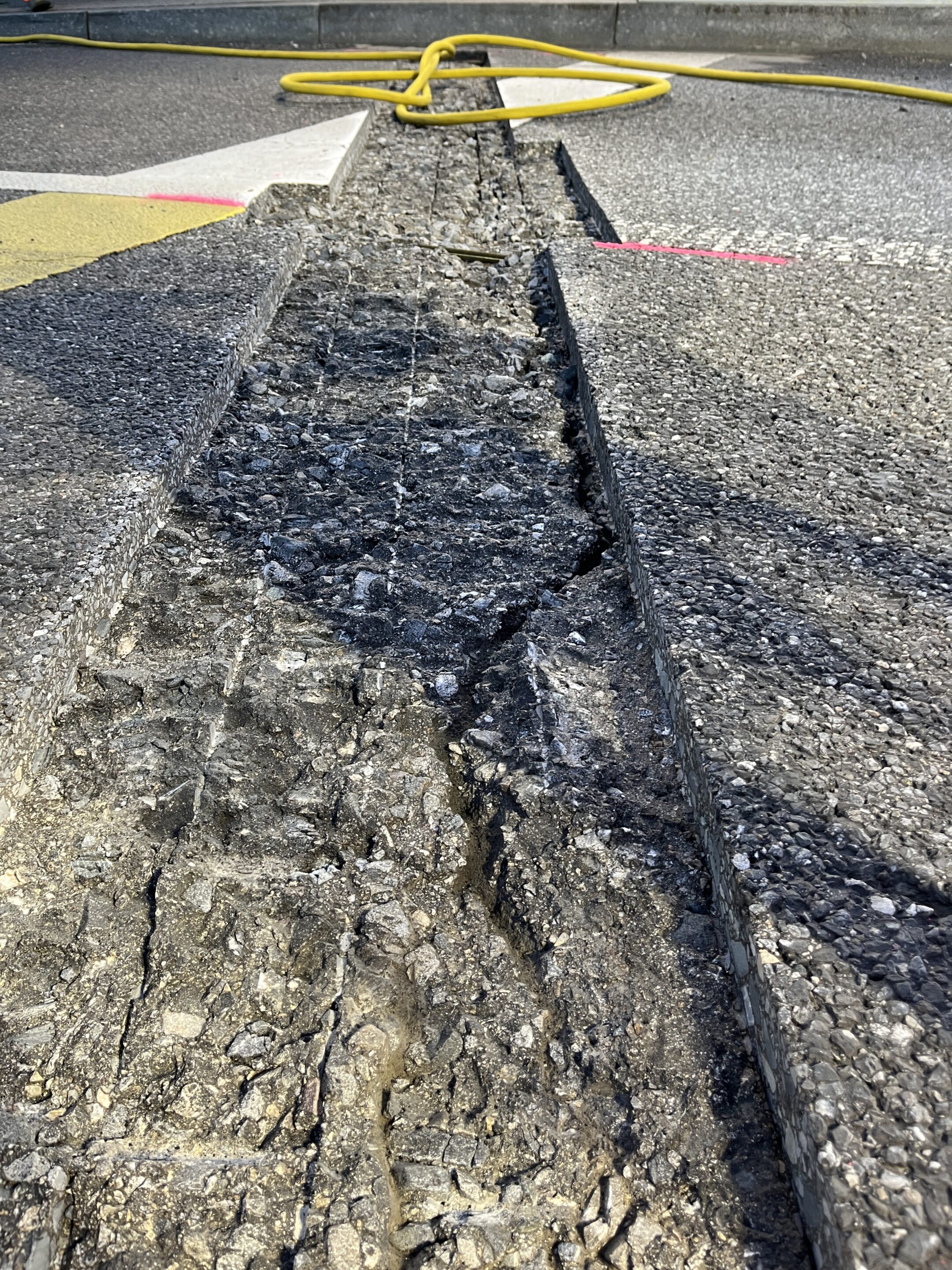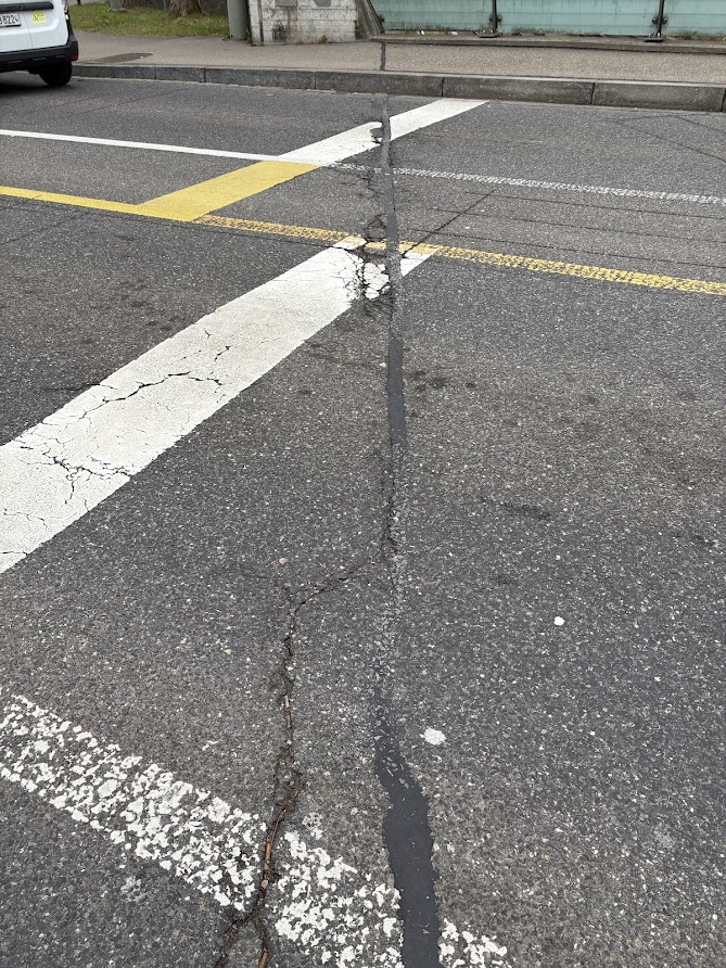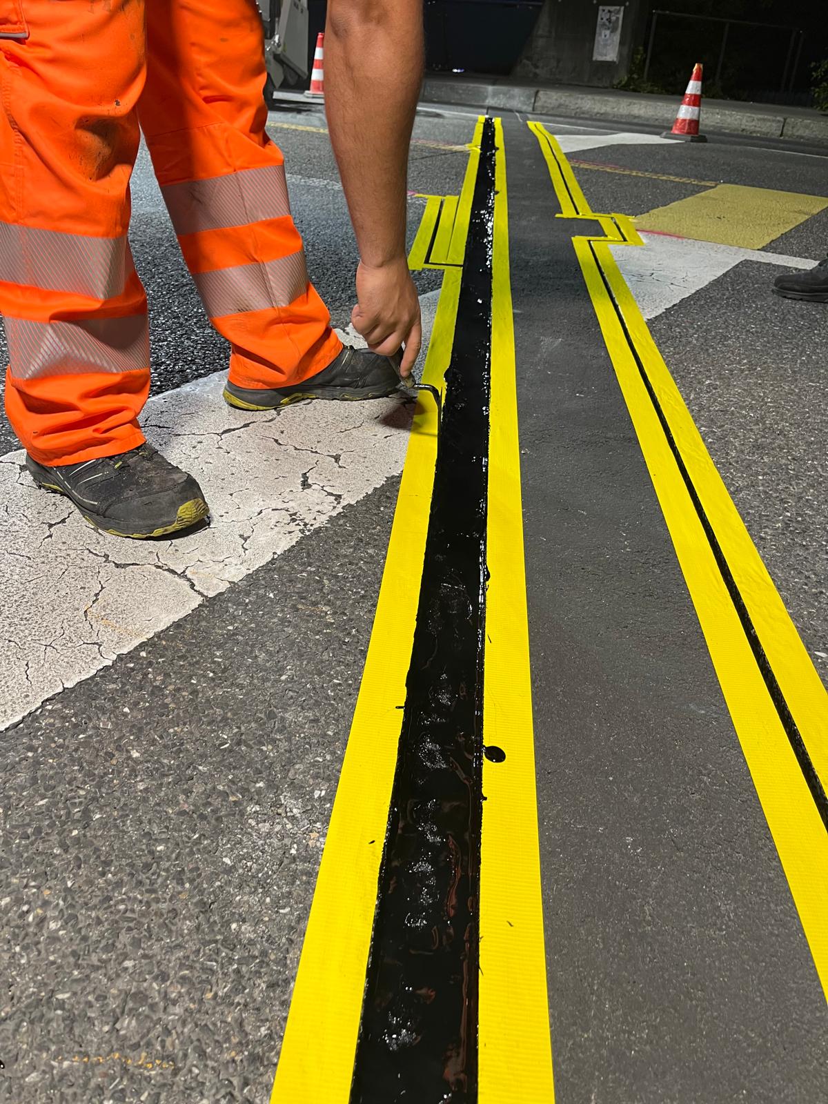 Anstelle einer klassischen Wiederherstellung mit Walzasphalt wurde der Belag mit einem schnell aushärtenden, hochbelastbaren, kunststoffbasierten Mörtel ausgeführt. Anschliessend wurde die Fuge im bewährten RESA-Flex-System erstellt.