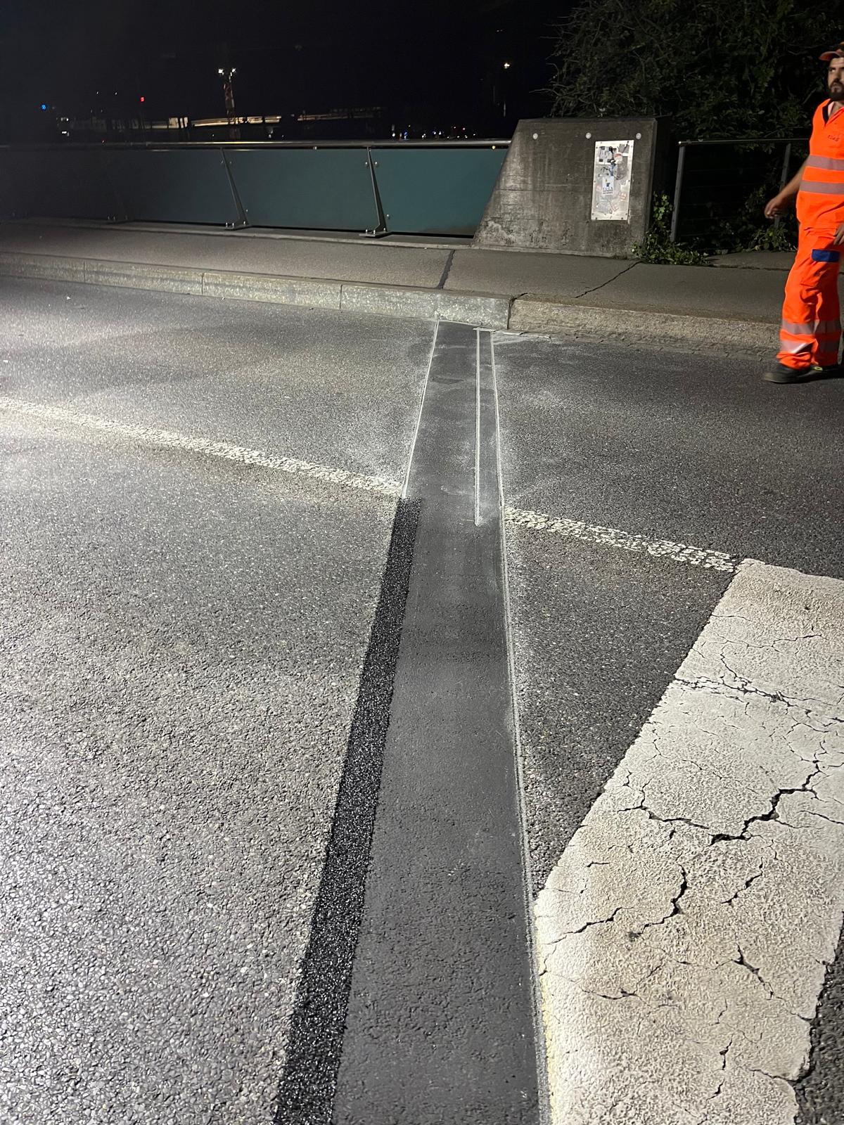 Um den Verkehr tagsüber nicht zu beeinträchtigen, wurden die Sanierungsmassnahmen während der Nacht ausgeführt.
