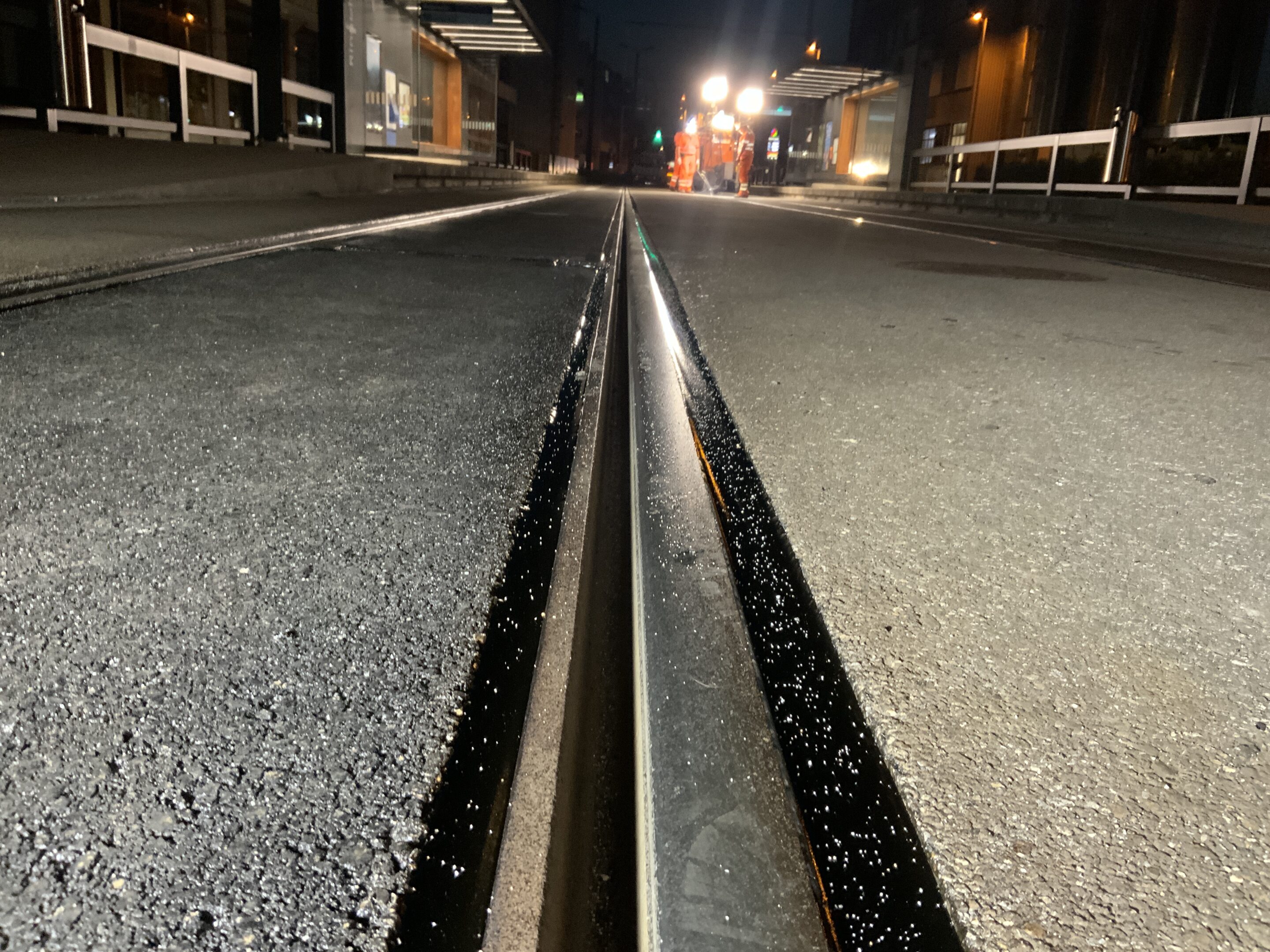 Um den Trambetrieb nicht zu tangieren, wurden die Arbeiten während der Nacht ausgeführt. Dank einer minutiösen Planung und Organisation konnte ein effizienter und reibungsloser Ablauf gewährleistet werden.